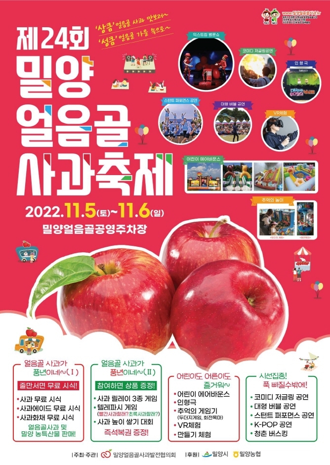 어린이도 어른이도 즐거워 ~ 어린이 에어바운스, 인형극, 추억의 게임기에 두더지 게임, 회전목마, VR체험, 만들기 체험, 시선집중! 푹 빠질수밖에! 에는 코미디 저글링 공연, 대형 버블 공연, 스턴트 퍼포먼스 공연, K-POP 공연, 청춘 버스킹 등이 마련되어 있다. 온라인 참여이벤트에 얼음골사과 오행시 짓기 이벤트, 얼음골사과 구매인증 리뷰 이벤트 등이 있다.